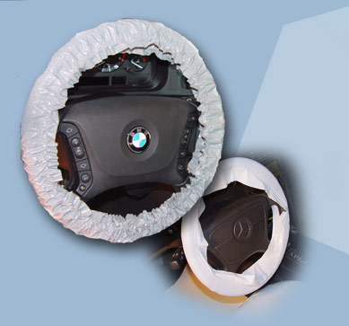 für die sichere Einmalnutzung oder mehrfach verwendbarer Lenkradschutz
