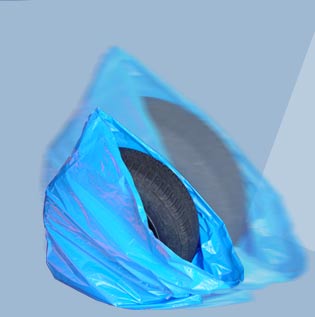 Reifenschutzhüllen aus umweltfreundlichem Polyethylen auf Rolle oder im Karton zur Einzelentnahme.